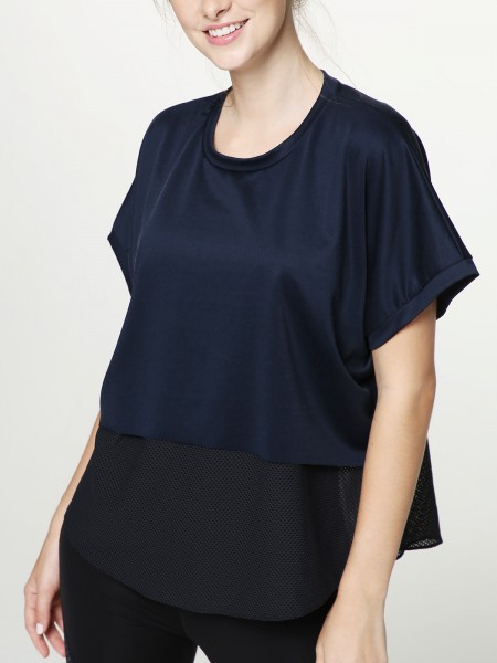 • Breathable drop shoulder tee with loose fit design and curved hemline in back for extra coverage, flatters your curves for a distraction free workout.