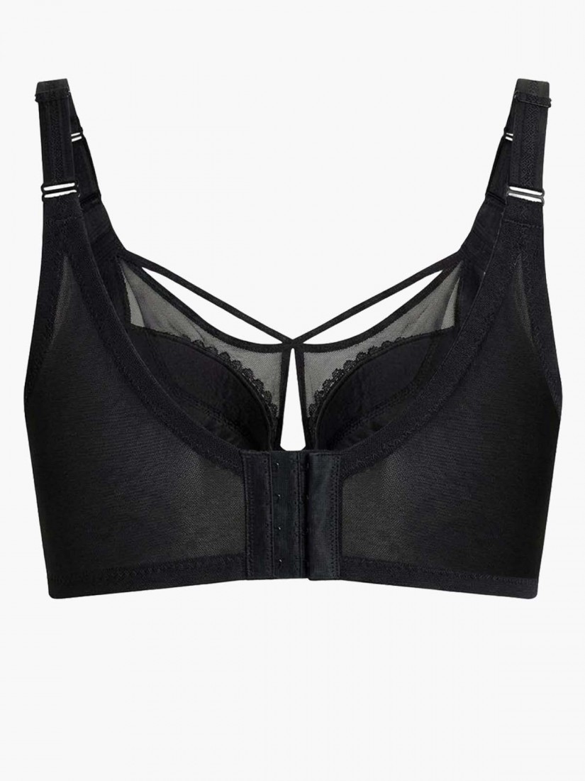• Encased a cross-over elastic along the cup edge for better cleavage, containment, fit, and stability, especially suitable for pendulous breasts.